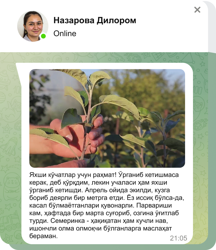 Харидорларимизнинг мўл ҳосили - кўчатларимизнинг энг яхши рекламаси